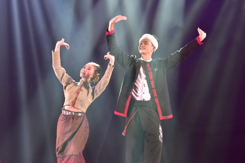 Ms. Phattanit Kingrat stated that she aims to develop cultural innovations to promote the values and identity of the local community of Nong Suea District, Pathum Thani Province. This is to be achieved through creative performing arts that embody cultural ways and create local tourism performances. The project, titled “Sao Lak Ban, Sao Lak Mueang,” involves studying the local context, rituals, traditions, lifestyle, and indigenous wisdom related to city pillars to guide the development of local performing arts in Pathum Thani Province. After the creation of these performances, the goal is to encourage community participation and enhance the community’s potential in developing performing arts to sustainably attract tourists to Pathum Thani Province. This performance has been evaluated for its competence and effectiveness by a panel of six experts: Professor Dr. Nara Phong Jaratsri, Research Professor at Chulalongkorn University; Associate Professor Amra Klamcharoen, Expert at Bunditpatanasilpa Institute; Associate Professor Chantana Iamsakul, Faculty of Fine and Applied Arts, Thammasat University; Dr. Chawalit Sutharanon, Department of Fine Arts, Ministry of Culture; Instructor Sanee Limpiyapant, Nakhon Si Thammarat Municipality; and Ms. Asama Pradisnit, Instructor & Choreographer at Variety Dance Company. They have provided valuable suggestions to enhance the quality of students’ work.