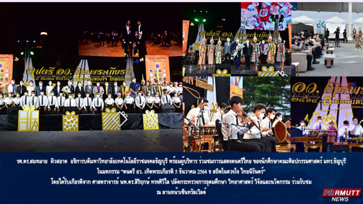 20/12/2021Permanent Secretary of the Ministry of Higher Education, Science, Research and Innovation (MHESI) Extremely Pleased with the Grand Closure of “MHESI Music Festival in Honor of December 5, 2564 BE” “RMUTT” Pulling Out All the Stops with Traditional Thai Music Shows in Central Bangkok
