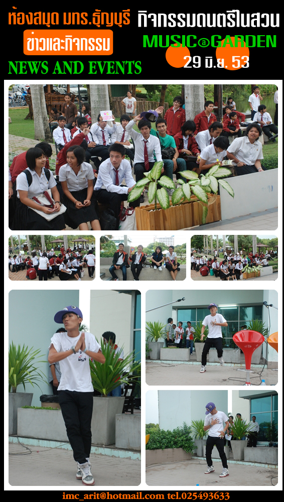 04/10/2010This activity has already completed successfully on Tuesday’s evening of 29 June 2010 at the front garden of RMUTT Library. The aim is to provide a stage for students to show off their abilities such as singing ,playing music instruments, and dancing ,etc. We had three groups of students who participated with us.